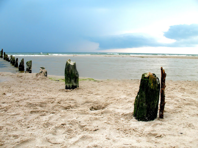 A gdzie byłam! w Dębkach, tam gdzie Piaśnica do Bałtyku wpływa. Miejsce przepiękne. Samo dojście do plaży wzdłuż rzeki jest bardzo malownicze. Mógłby ktoś powiedzieć, że rzeki zwykle do morza idą:). Tak, ale samo ujście najczęściej jest jakby to ująć?...zorganizowane, zabudowane; są falochrony, bulwary, mariny itp. Tu nie ma nic.... absolutnie nic....Piaśnica spokojnie, bez niczyjej pomocy wpływa do morza.